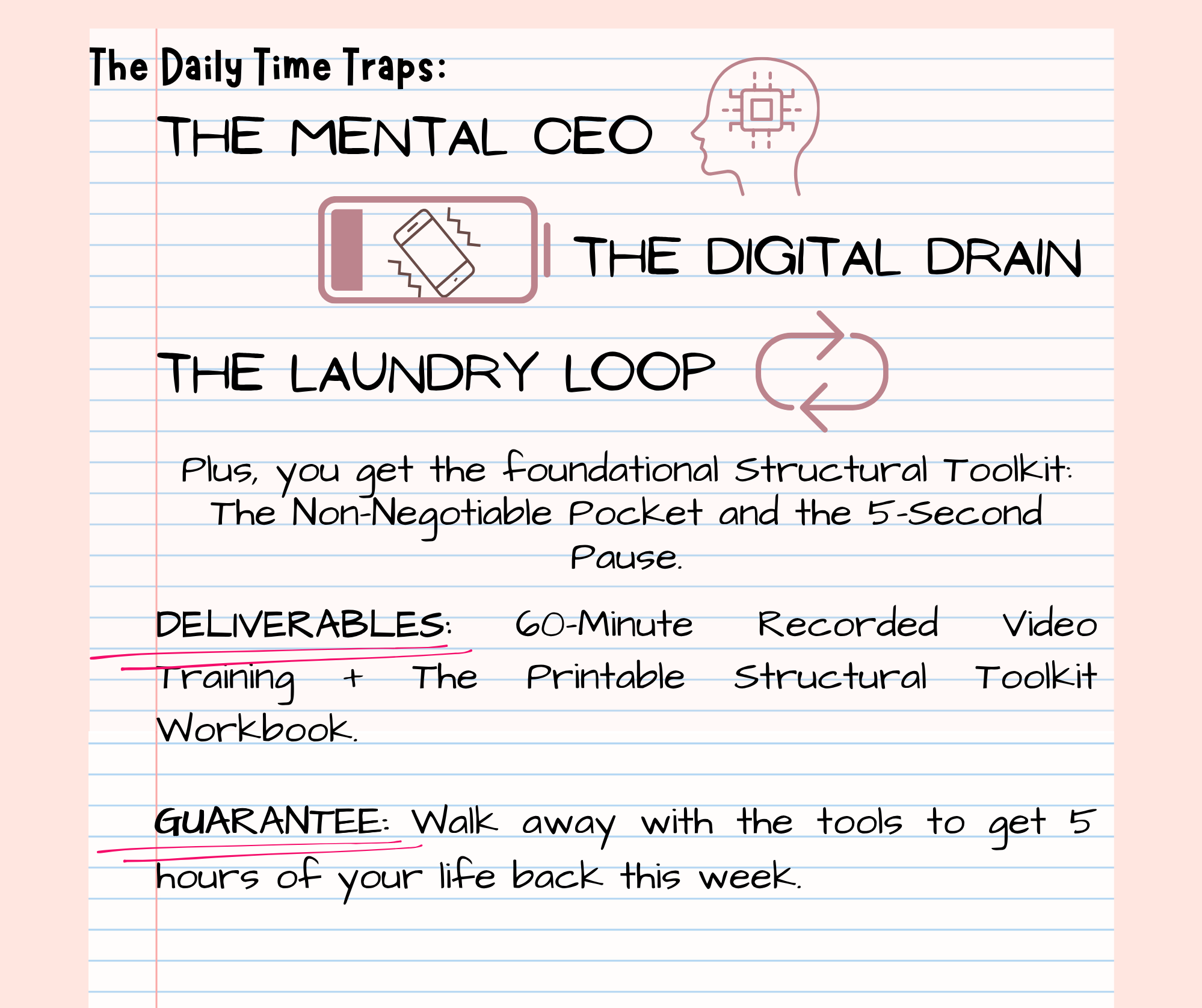 Stop trying to fix a broken system with guilt and willpower (you don't need more motivation). It's time to act strategically. You can invest $67 today—the price of two rushed lattes—to gain hours of calm and energy this week. GET 5 HOURS BACK FOR:
